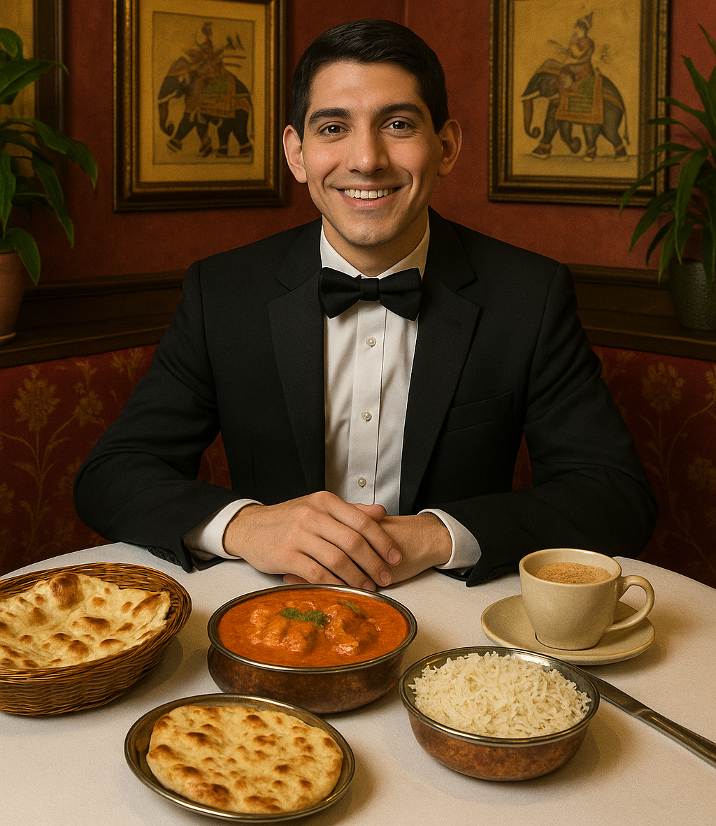 "I have been vegetarian since childhood," he says, another trait that marks him out from typical British students such as his flatmates who leave the refrigerator door open causing him to exclaim "Oh my dear lord!" regularly. "But I'm vegetarian who appreciates proper spice levels. I find British cuisine painfully bland. Typical British food preparation methodology yields unsatisfactory gustatory experience. Indian restaurants understand vegetarian cuisine properly."